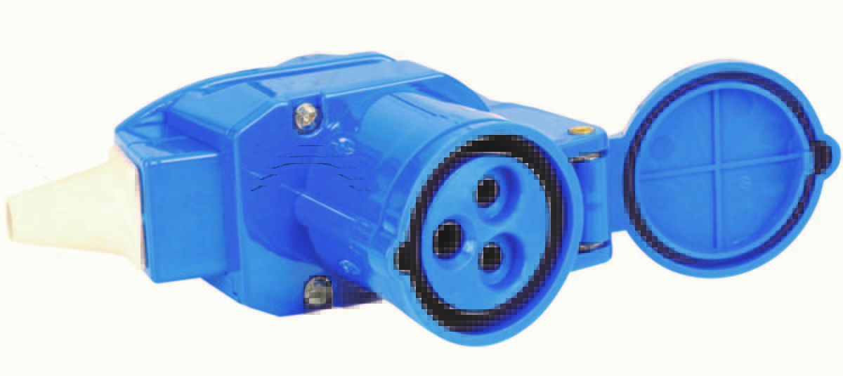 CEE coupler with cap. Three poles. With Schko socket on the back.