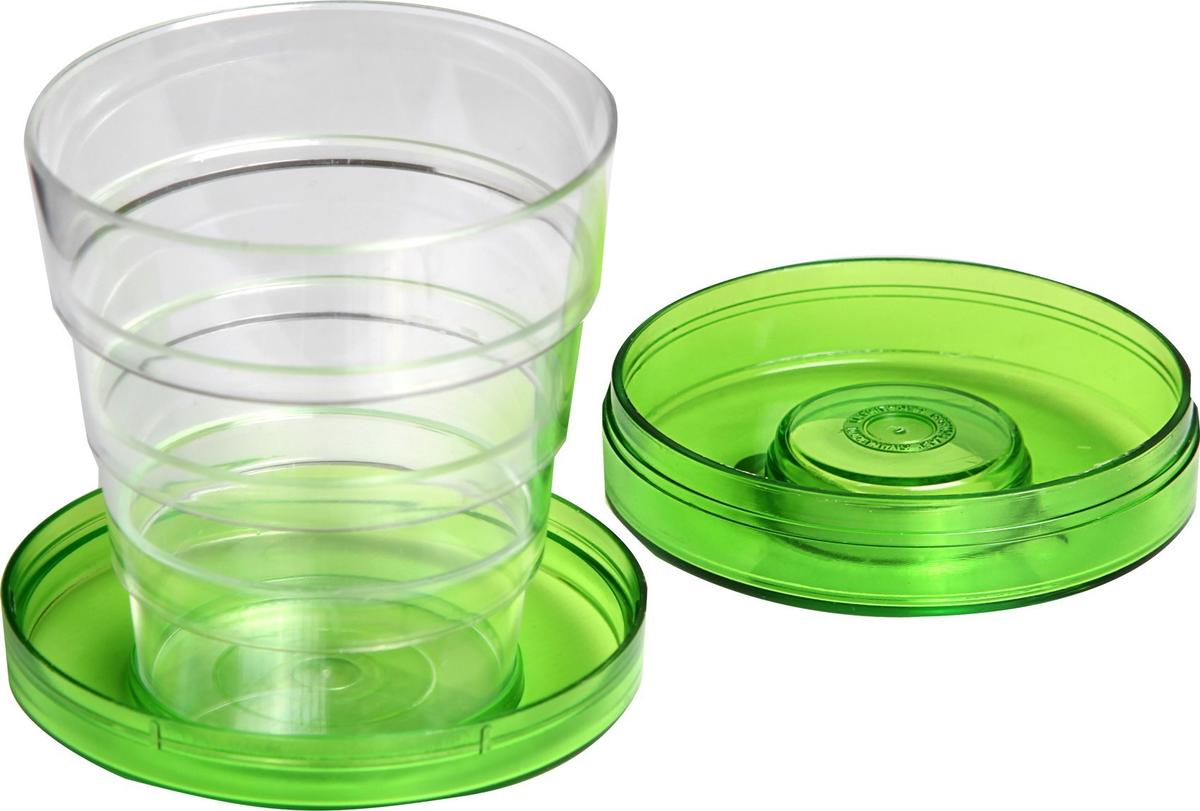 Collapside tumbler made of plastic with lid and pill holder.
