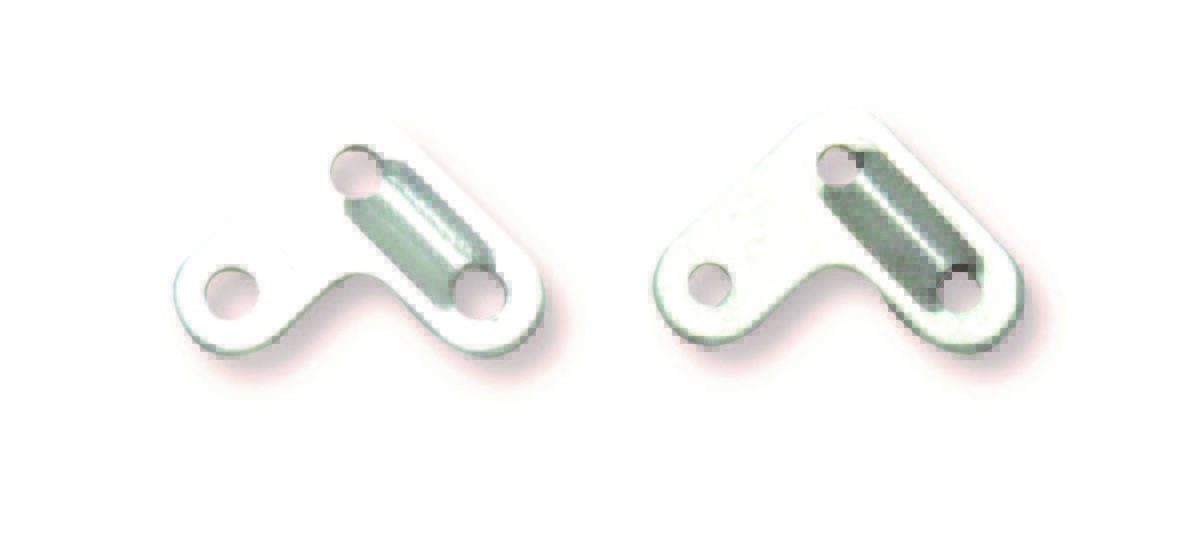 Aluminium guy line runner with three holes.