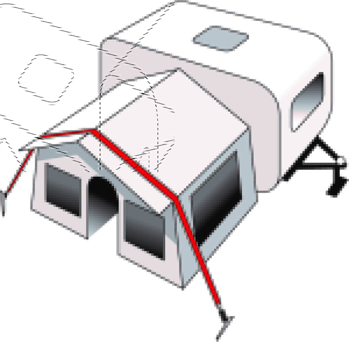 Stabilizer band for tents and awnings in case of windy weather. The kit includes the blocking band (11 meters), the tension spring and the anchoring pegs.