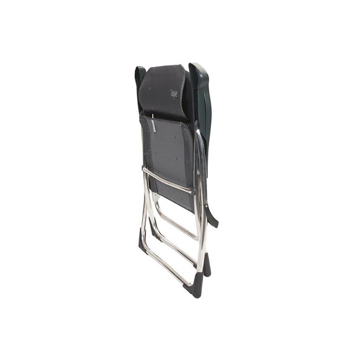 Sedia con schienale regolabile in alluminio. Molto leggera e di dimensioni contenute.
