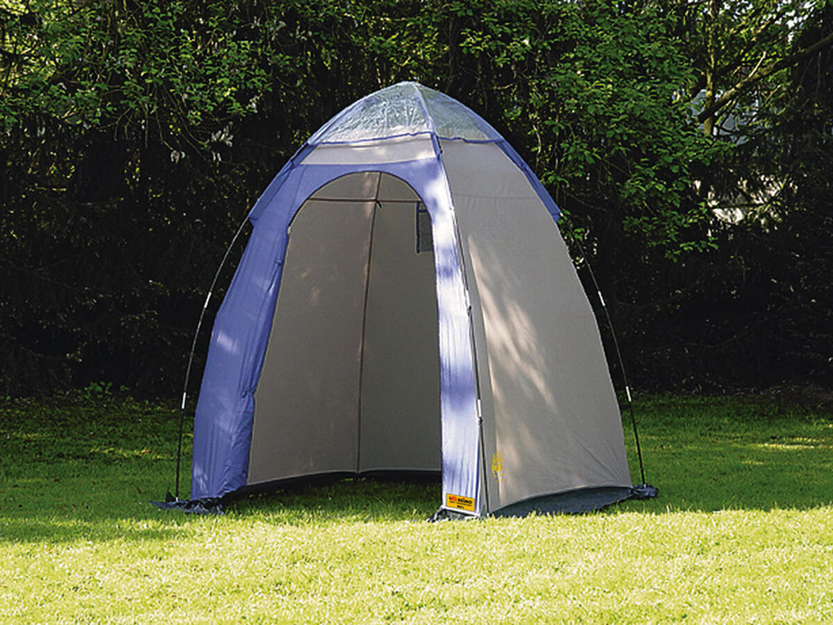 Pratica tenda cabina per campeggio e spiaggia. Ideale per la doccia e cambiarsi, ma anche come tenda cucina. Porta con cerniera. Grande finestra posteriore.